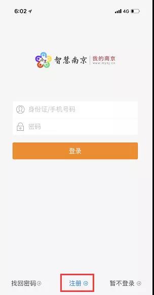 1、下載“我的南京”APP,完成用戶注冊(cè)